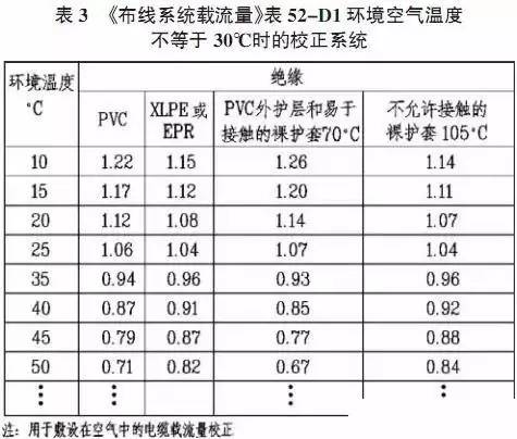 埋地电缆(直埋地中或敷设在地下管道中的电缆)为20℃.如果电线电缆敷设的环境温度不同时,则电线电缆的实际载流量应为:把《布线系统载流量》表52-C1至表52-C12中给出的载流量值乘以表52-D1(《民规》表7.4.3-1)和表52-D2(《民规》表7.4.3-2)中合适的温度较正系数。