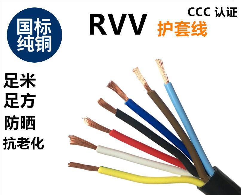 RVV全称铜芯聚氯乙烯绝缘聚氯乙烯护套软电缆,又称轻型聚氯乙烯绝缘聚,俗称软护套线,是护套线的一种。 RVV电线电缆就是两条或两条以上的RV线外加一层护套。RVV电缆是弱电系统最常用的线缆,其芯线根数不定,两根或以上,外面有PVC护套,芯线之间的排列没有特别要求。 字母R代表软线字母V代表绝缘体聚氯乙烯(PVC)
