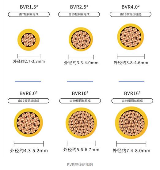 2、BVR的构造是由电缆铜线电导体和PVC绝缘层构成的